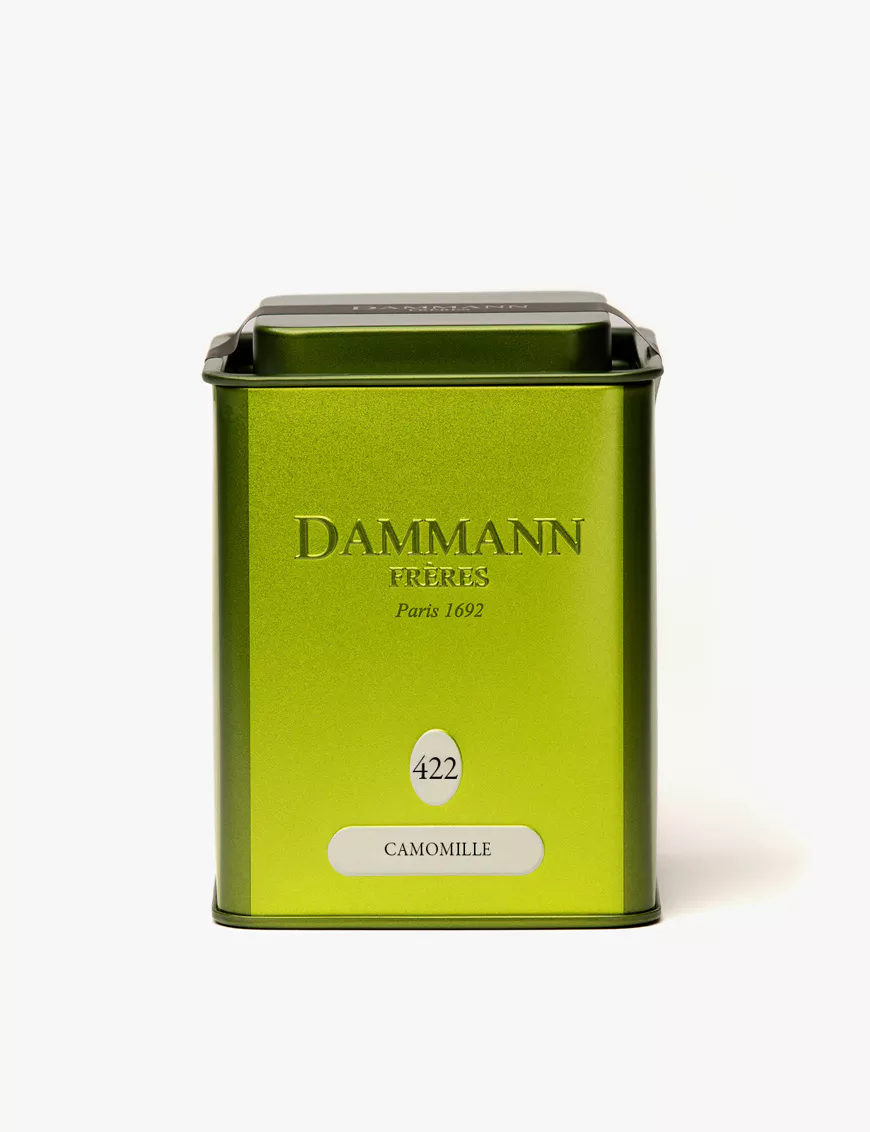 Caja 24 Chamomille: Planta perenne cultivada sobre todo en Europa del Este, cuyas flores se cosechan entre mayo y julio. Su infusión de un intenso color amarillo es de sabor dulce y afrutado con toques de piña.Envasada en lata metálica.Peso neto: 35 g
