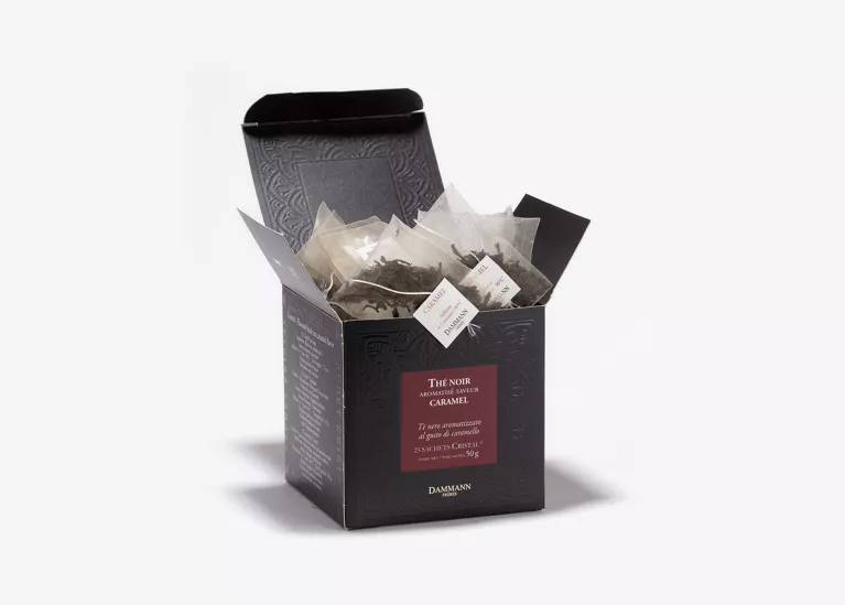 Un thé noir aux notes intenses de caramel Toffee agrémenté de morceaux de fruits. à accompagner de cakes ou de tartes aux fruits à l’occasion d’un goûter.