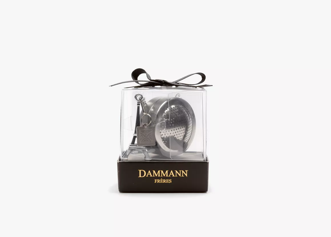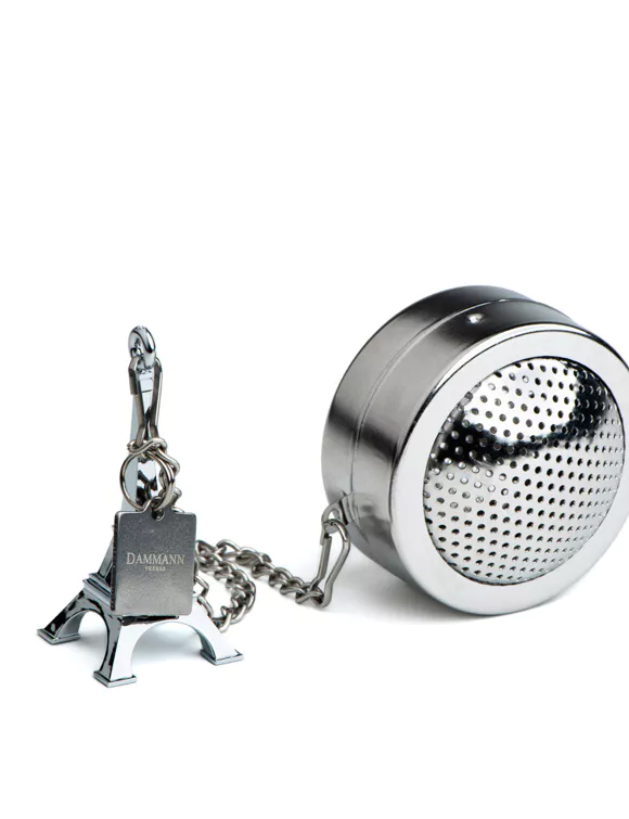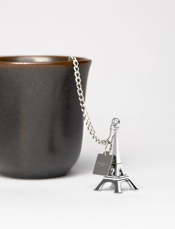 A tea ball adorned with at the end of its chain, a replica ot the ‘Eiffel Tower’ in metalized resin. Made from stainless steel. Can be used for the infusion of all types of tea. Ø 5 cm